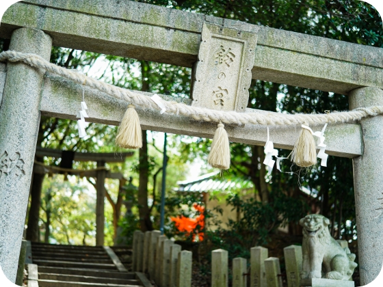 主祭神は天児屋根命(あめのこやねのみこと)で、和泉国神名張大鳥郡二十四座の内の式内社です。2月の節分祭に12個の土鈴で占いを行う鈴占神事を執り行うことから『鈴の宮』とも呼ばれています。街中にひっそりと佇んでいる神々しい神社です。神主さんも親切でご祈祷中も撮影可です!