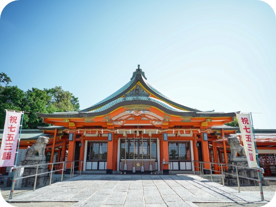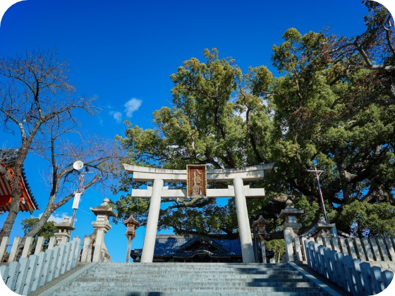 日本武尊が護祭神であり、とくに防災雨祈の祈願社としてその名が知れ渡り全国からお詣りに来るほど有名な神社です。秋のだんじり祭りやお正月にたくさんの屋台が並びます。七五三シーズンも多くの人がご祈祷に来られます。そのため早い時間の撮影がおすすめです。