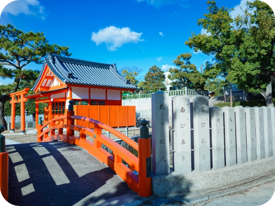 世界文化遺産 百舌鳥古墳群の中に鎮座し、応神天皇を主神とする境内社に仁徳天皇他三神を奉斎する古い歴史と伝統のある神社です。